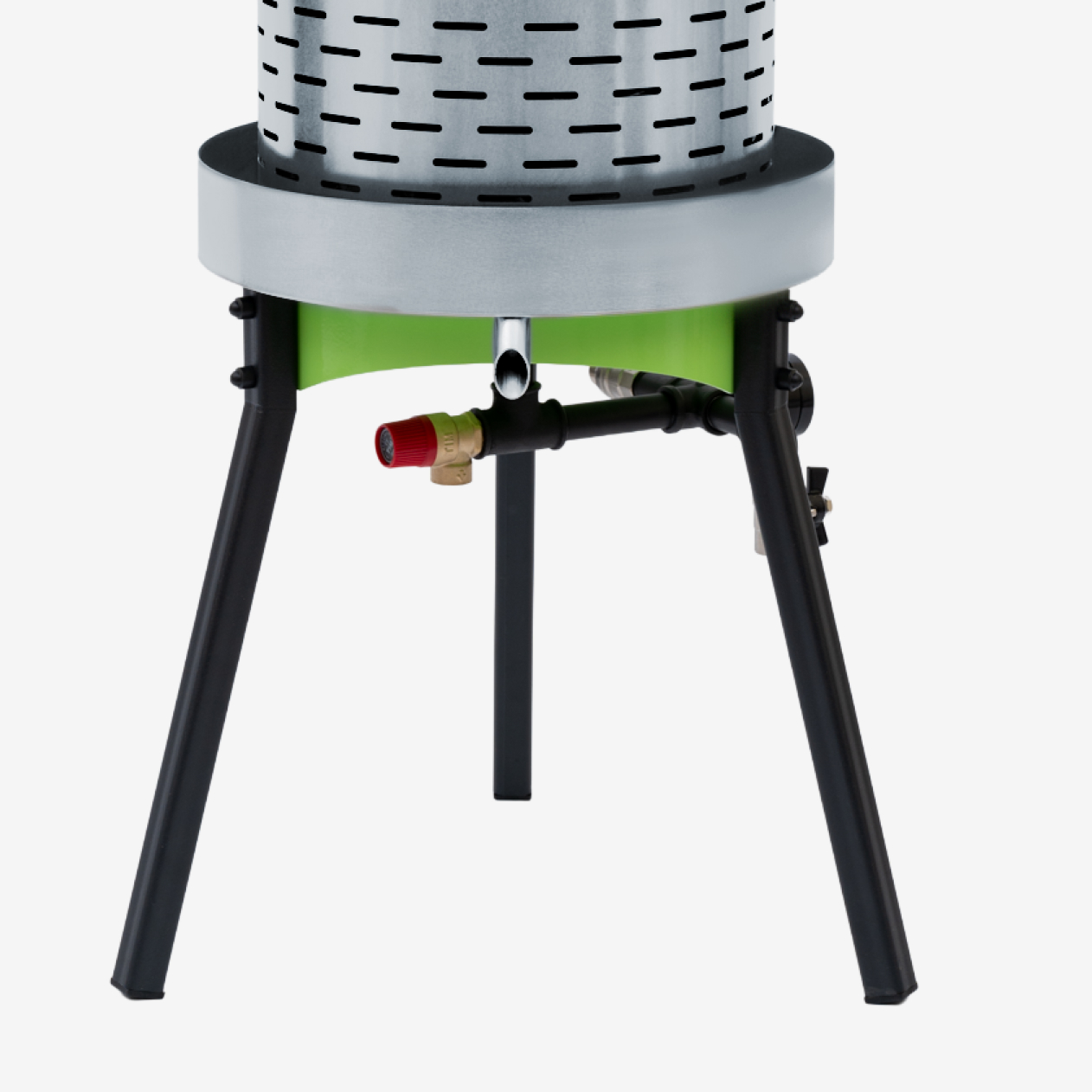 Пресс устойчиво фиксируется благодаря трём опорным ножкам высотой 40 см. Каждая ножка устанавливается в специальные пазы рамной конструкции и закрепляется при помощи болтового соединения. Для изготовления используется углеродистая сталь, отличающаяся прочностью.