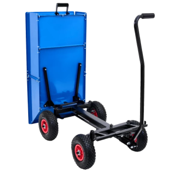 Небольшая высота тележки (49 см) и разгрузка по принципу «самосвала» позволяют не перегружать спину.