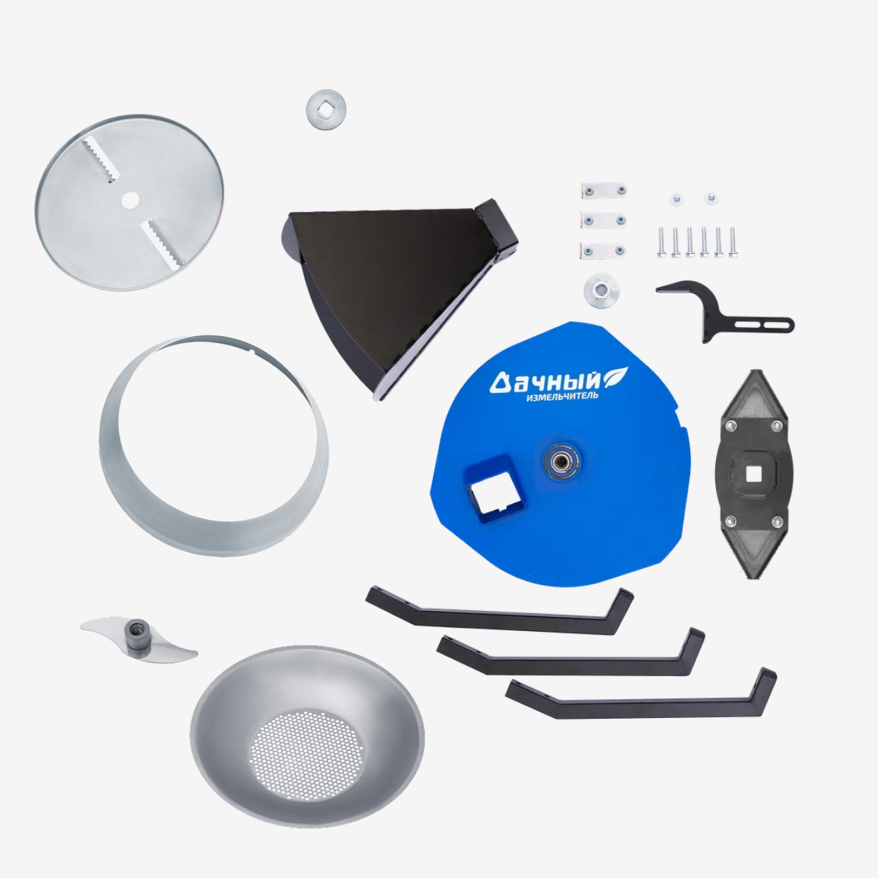 Веткоизмельчитель на болгарку "Дачный" + насадка для измельчения зерна + насадка для измельчения яблок и выгрузная воронка