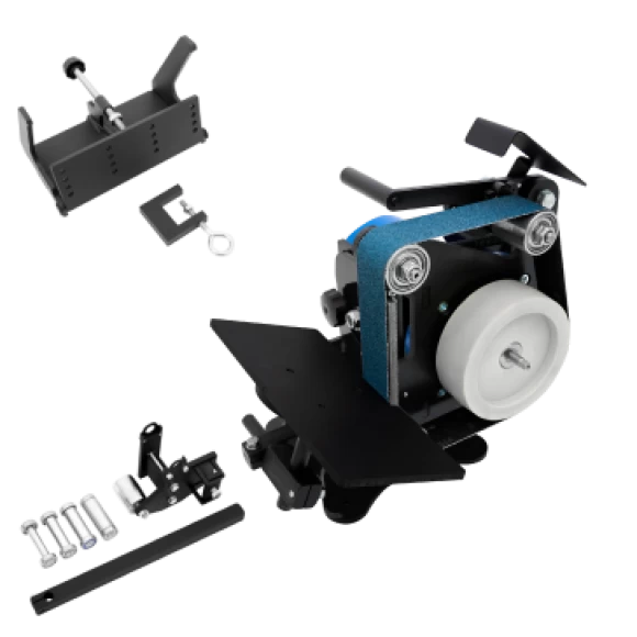 Конструкция гриндера продумана и проста. Пользоваться системой теперь ещё удобнее: мы доставляем станок в полной сборке. Покупателю надо лишь установить поворотный стол и отрегулировать ленту. При необходимости — подключить частотный преобразователь, установить модуль для выведения спусков и контуровочный модуль.