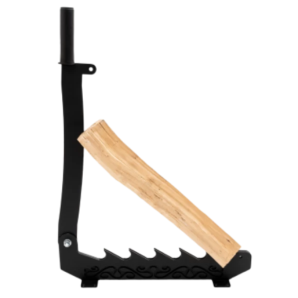 Щепокол — ручной садовый режущий инструмент, предназначенный для вертикального расщепления дров на щепу (лучину). Система работает по принципу рычага, который помогает разделять дрова на мелкие части. Модель сделана из прочной стали СТ–3 толщиной 4 мм. Подходит для работы с поленьями длиной 30–35 см. Эстетику внешнего вида обеспечивают чёрный цвет стали и орнамент, выполненный с помощью лазерной резки.