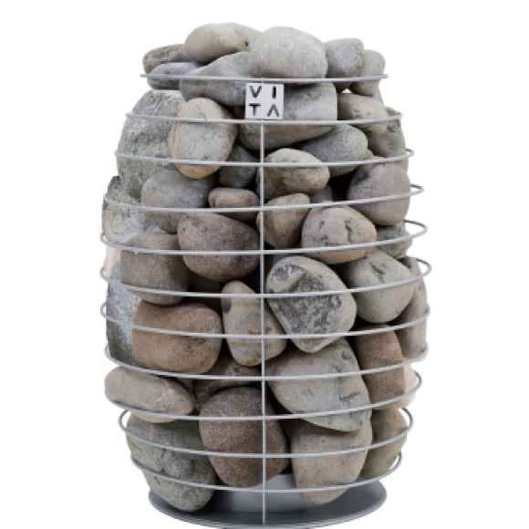 Печь VITA не только функциональна, но и украшает интерьер парной благодаря кольчатому дизайну, подчёркивающему естественную красоту нагретых камней. Компактные размеры и лёгкий вес позволяют без труда перемещать печь.