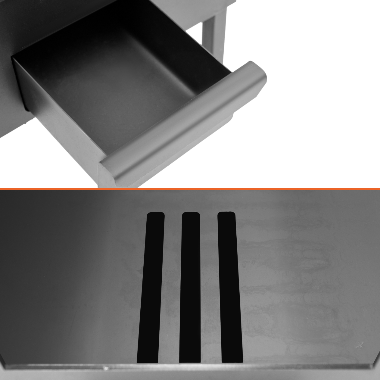 Дверца печи изготовлена с использованием комбинации материалов: углеродистой стали СТ‑3 толщиной 3 мм и огнеупорного стекла размером 142 × 142 мм. Конструкция позволяет легко снимать дверцу с петель при необходимости. Плотное прилегание обеспечивает надёжная ручка‑замок. Благодаря стеклянной вставке помещение наполняется мягким светом, а пользователь получает возможность любоваться завораживающим пламенем внутри топки.
