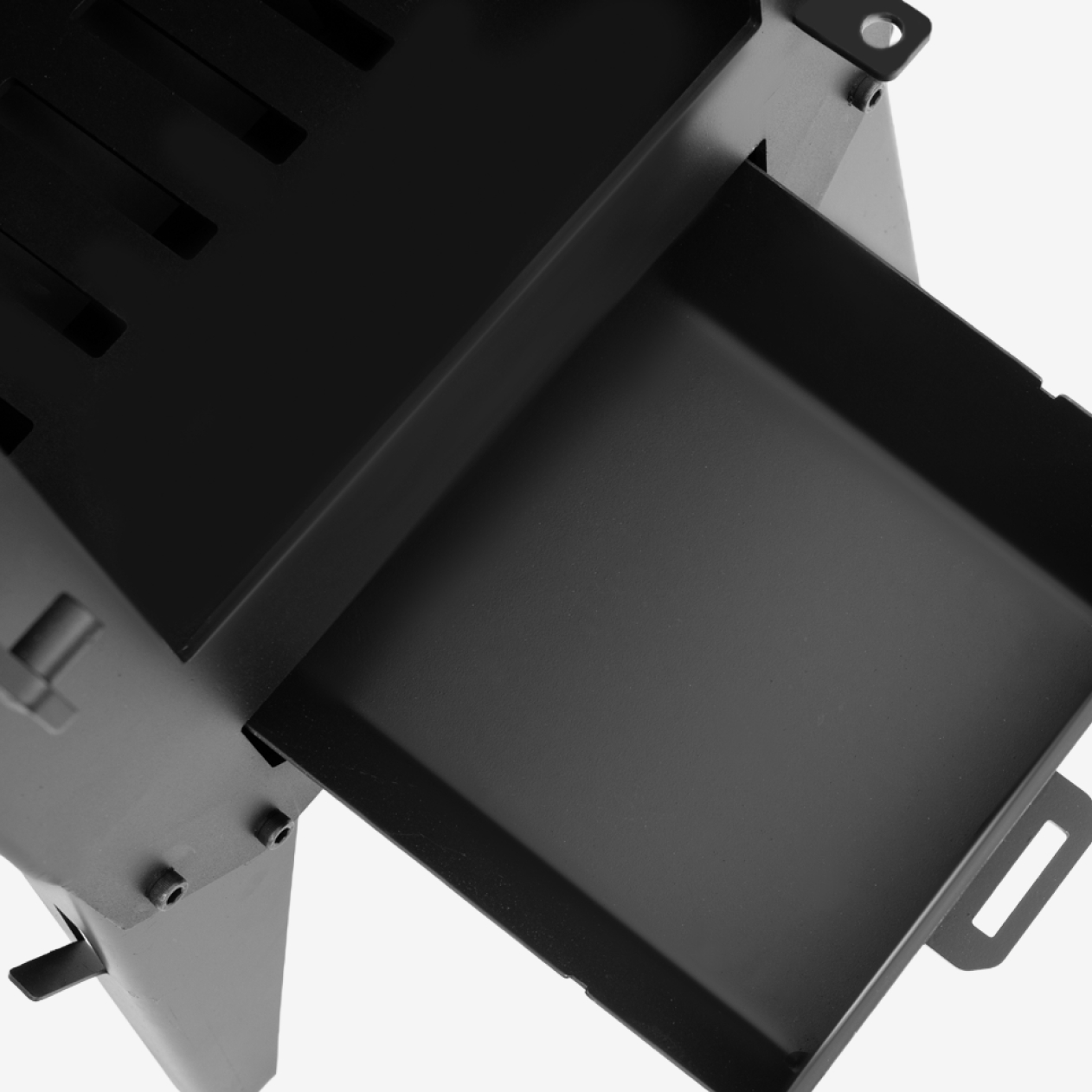 Дополнительный практичный элемент конструкции — боковые петли на ножках. Они служат удобным местом для хранения кочерги и совка: инструменты всегда будут под рукой и при этом не будут мешать в процессе работы с печью.