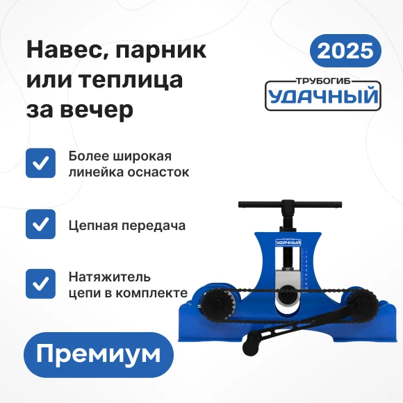 Трубогиб «Удачный Премиум» — ручной трубогиб промышленного производства. Разработан для гиба профиля (круглой трубы, прутка, полосы), с определённым радиусом закругления части либо всей заготовки. Принцип работы — холодная деформация металла.
